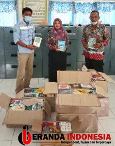 Serah terima bantuan buku dari PT GAM ke perpustakaan sekolah.