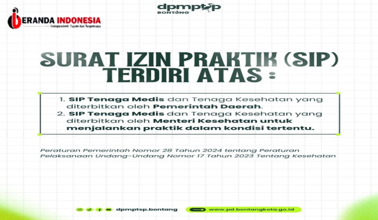 Penata Perizinan Ahli Muda DPMPTSP Bontang, Sofyansyah, menjelaskan bahwa berdasarkan Peraturan Pemerintah Nomor 28 Tahun 2024 sebagai turunan dari UU Kesehatan Nomor 17 Tahun 2023, terdapat dua jenis penerbit SIP yang diakui.