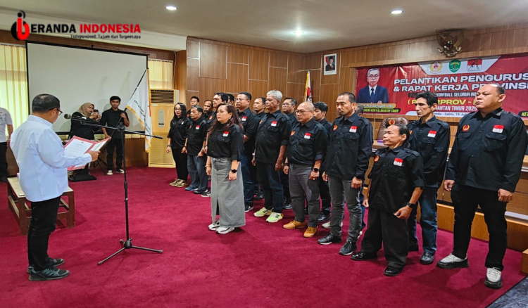 SAMARINDA – Ketua Umum KONI Kaltim, Rusdiansyah Aras, melantik dan mengambil sumpah prajanji Carolina Laoh sebagai Ketua Umum Persatuan Korfball Seluruh Indonesia (PKSI) Kaltim beserta jajaran pengurus PKSI provinsi Kaltim periode 2024 – 2028 di Kantor KONI Kaltim, Jalan Kusuma Bangsa, Samarinda, Sabtu (19/7/2025).