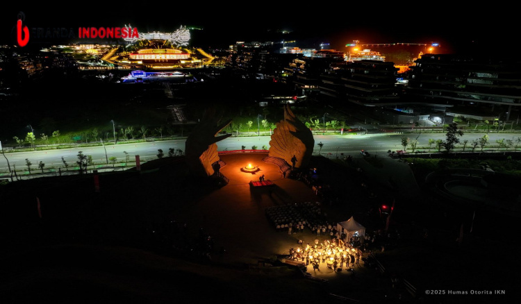 NUSANTARA – Suasana hening menyelimuti Taman Kusuma Bangsa, Kawasan Inti Pusat Pemerintahan (KIPP) Ibu Kota Nusantara (IKN), Sabtu (16/8/2025) malam.