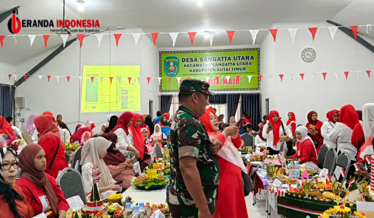 KUTAI TIMUR – Babinsa Sangatta Utara Koramil 0909-01 Sangatta, Sertu SS Bintang, mengapresiasi penyelenggaraan lomba tumpeng dalam rangka memperingati HUT Kemerdekaan RI ke-80, Selasa (26/8/2025).