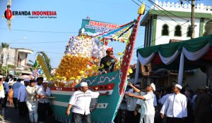 Salah satu perayaan meriah terlihat di Desa Kembiritan, Kecamatan Genteng, Jumat (5/9/2025). Ribuan warga tumpah ruah mengikuti pawai endhog-endhogan sejauh 2,2 km dari Masjid Baiturrahman menuju Kantor Desa Kembiritan, membawa aneka jodhang telur hias dengan iringan rebana dan lantunan selawat.