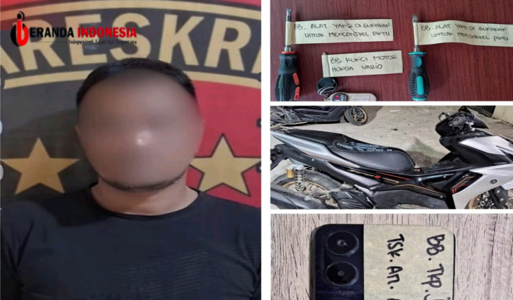 “Penangkapan dilakukan setelah tim melakukan penyelidikan dari laporan korban dan keterangan saksi-saksi. Saat diamankan, kami juga menyita barang bukti berupa satu unit ponsel Realme warna hitam, sebuah motor Yamaha Aerox, serta dua obeng yang digunakan pelaku untuk mencongkel jendela,” ujar Kanit Reskrim.