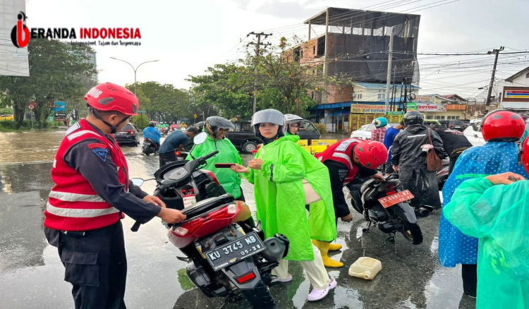 Tim Respon Bencana Batalyon B Pelopor diterjunkan ke lokasi untuk membantu evakuasi warga serta mengatur arus lalu lintas.
