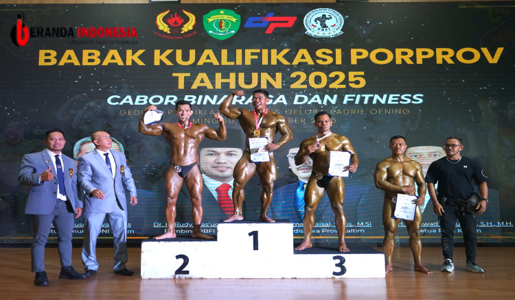 SAMARINDA — Brigadir Isman Yudhi, anggota Seksi Logistik Satbrimob Polda Kalimantan Timur, meraih Juara 2 kategori Bodybuilding Under 70+ Kg pada babak Kualifikasi Pekan Olahraga Provinsi (Porprov) Tahun 2025 Cabang Olahraga Binaraga dan Fitness di GOR Sempaja, Kota Samarinda, Minggu (26/10/2025).