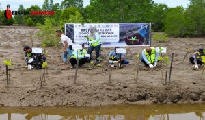 KUTAI TIMUR – PT Pamapersada Nusantara (PAMA) site Kutai Timur bersama PT Kalimantan Prima Persada (KPP) site Indexim menginisiasi program penghijauan dengan menanam 2.000 bibit mangrove jenis Rhizophora di kawasan pesisir Pantai Teluk Lingga, Kabupaten Kutai Timur, Kamis (21/11/2025).