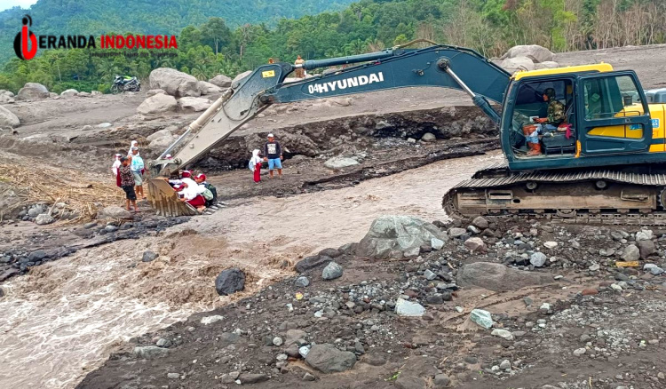 Pasalnya, akses jalan warga yakni Jembatan Limpas yang membentang di atas Sungai Regoyo terputus akibat banjir lahar hujan Gunung Semeru beberapa waktu yang lalu.