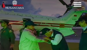 Menjelang senja dia mendarat persis di depan Istana Garuda. Pemandangannya jadi sangat menarik dengan lampu warna-warni yang menghiasi Istana. Prabowo sempat berkomentar rumput yang diinjaknya. “Ini rumput beneran atau apa? Bagus sekali,” katanya saat disambut Kepala Otorita IKN, Basuki Hadimuljono.