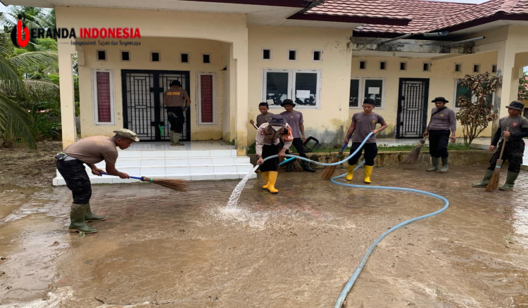 Kegiatan diawali dengan pelaksanaan apel gabungan di lapangan apel Mapolres Lhokseumawe yang dipimpin langsung oleh KBO Binmas Polres Lhokseumawe, Iptu Gunawan. Dalam arahannya, ditekankan pentingnya sinergi antarunit serta ketulusan dalam melayani masyarakat di daerah penugasan. Usai apel, seluruh pasukan segera melakukan pergeseran pasukan (serpas) menuju ploting wilayah pembersihan di Desa Punteut. Setibanya di lokasi, para personel baret biru dengan sigap berjibaku menyingkirkan endapan lumpur pekat yang mengotori area dalam maupun halaman Posyandu, sehingga akses pelayanan kesehatan masyarakat tidak lagi terhambat.