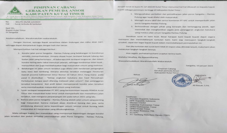 Kondisi Jalan Poros Ranpul Memprihatinkan, GP Ansor Kutim Buat Surat Terbuka, Zainul: Kami Tujukan hingga Presiden