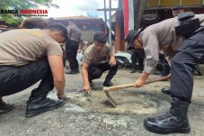 Cegah Laka Lantas, Polresta Banyuwangi Tambal Jalan Berlubang