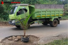 Kecewa Kerusakan Jalan Tidak Kunjung Diperbaiki, Warga Kubar Tanam Pohon Kelapa di Jalan Trans Kalimantan