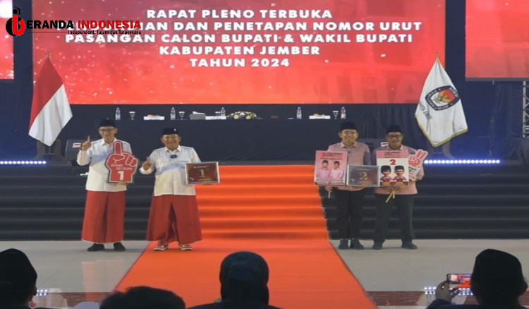 Pengundian Nomor Urut Pilbup Jember Diwarnai Oerang Yel-yel ‘Cukup 1 Istri’ vs ‘Cukup 1 Periode’