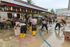 Bakti Tanpa Batas, Personel BKO Brimob Kaltim Bersihkan SDN 13 Samudera Aceh Utara dari Sisa Banjir
