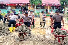 Bantu Pemulihan Sekolah, Personel BKO Brimob Kaltim Bersihkan Lumpur di SDN 1 Samudera Aceh Utara
