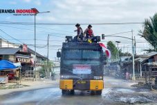 Atasi Debu Pekat Pascabanjir, Polres Pidie Jaya Terjunkan Mobil Water Cannon Bersihkan Jalan