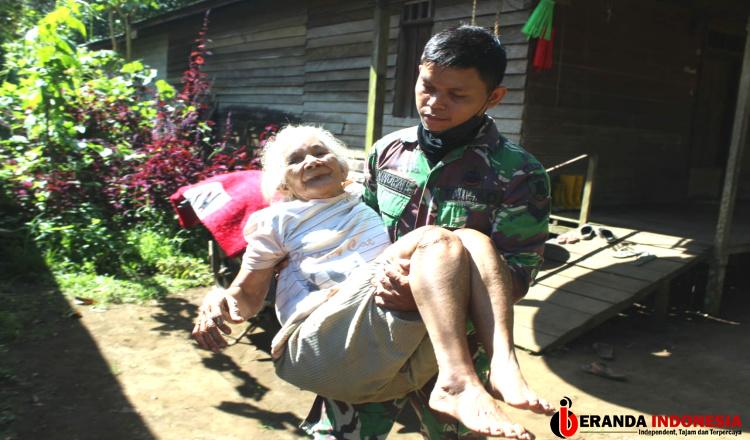 Bentuk Perhatian dan Kepedulian, Personil Satgas TMMD 113 Kubar Gendong Lansia