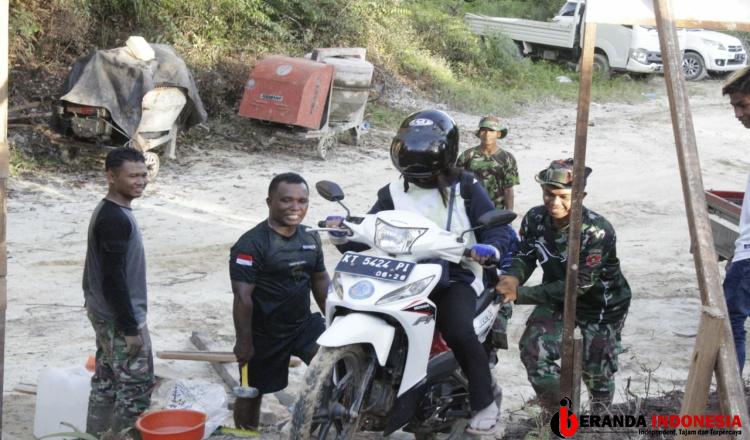 Jalanan Licin, Satgas TMMD 113 Kubar Bantu Dorong Motor Warga