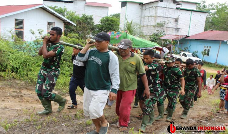 Bentuk Dukungan Moril dan Kebersamaan, Satgas TMMD 113 Kubar Panggul Jenasah Warga