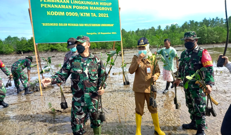 Gandeng Muspika, Koramil 0909-01/Sangatta Tanam 500 Bibit Mangrove di Kenyamukan
